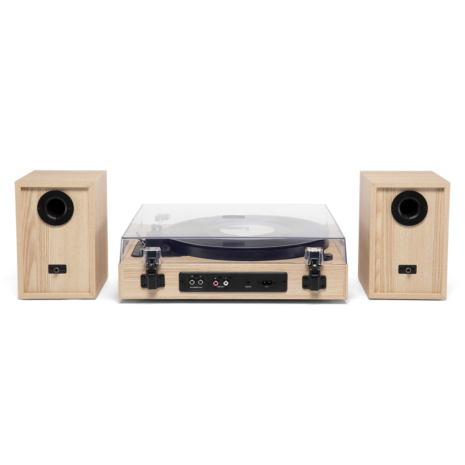 ■ MID-CENTURY MODERN DESIGN – Full-size turntable system with matching stereo speakers, combining classic aesthetics with modern functionality.