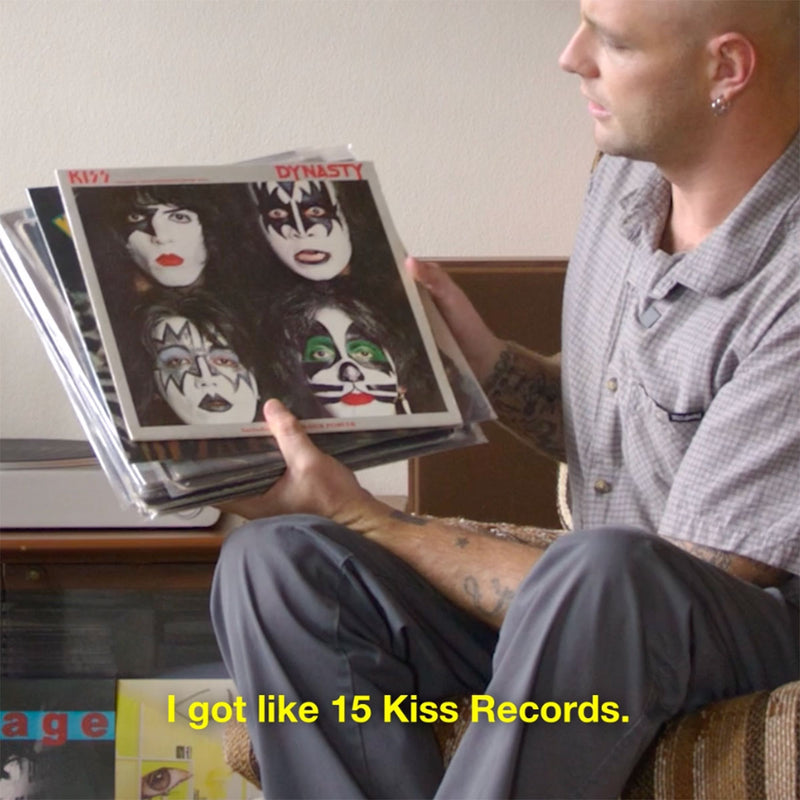 Then I’ve got like 15 Kiss records. Starchild - I would be Starchild, he's my favorite. All the albums have really cool covers and besides that one [holding up “Smashes, Thrashes & Hits”], that's not that cool.