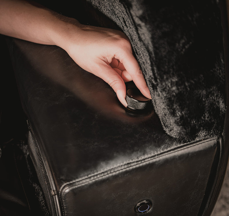 The centerpiece of the collection, the Solodome TWS edition chair, features a custom black leatherette interior paired with a sleek black gloss exterior. The Solodome TWS edition is hand built in California with an integrated custom volume knob and EQ controls to customize the listening experience while sitting in the chair. Once immersed in the chair, the listener is surrounded by sound, and a natural sound isolation is created from the chair’s enclosure. The 3.5 mm jack on the back of the chair allows for a wired connection for those who prefer an analog signal, as well as aptX HD Bluetooth connectivity for high-resolution wireless sound. The Solodome TWS chair has been designed to elevate any space with its blend of form and function.