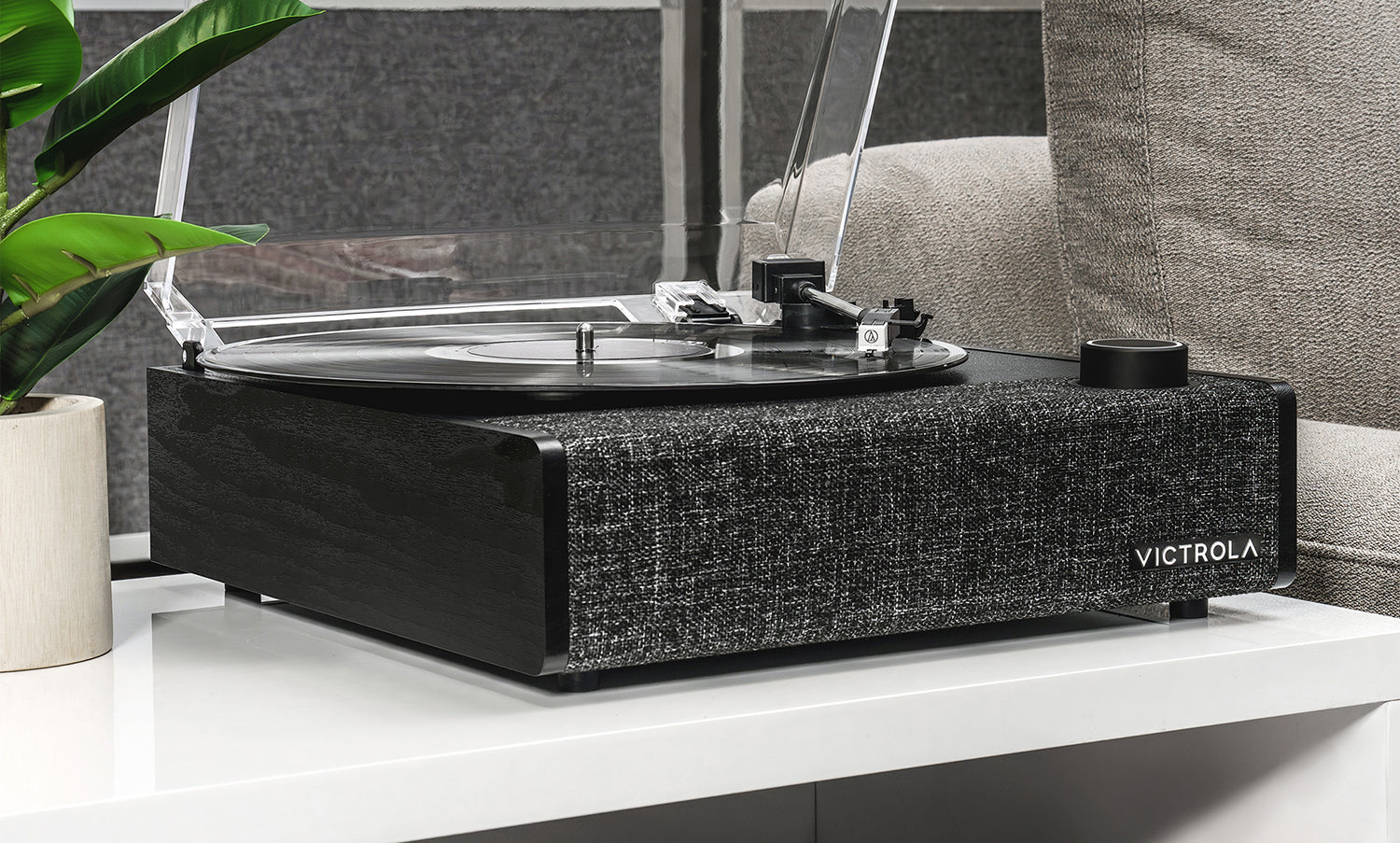 The Victrola Eastwood II vinyl player builds on the quality and functionality of the acclaimed original Eastwood record player with an updated vintage design and all-new materials to enhance functionality and style. The Eastwood II features a simplified user interface, allowing you to control your music from a single, illuminated knob, whether you’re spinning vinyl on the 3-speed turntable or streaming via Bluetooth®. Its built-in, custom-tuned speakers are now housed behind a soft fabric, giving the Eastwood II a modern, minimalist aesthetic.