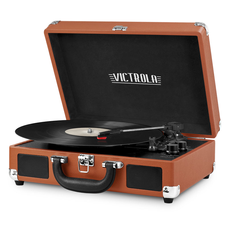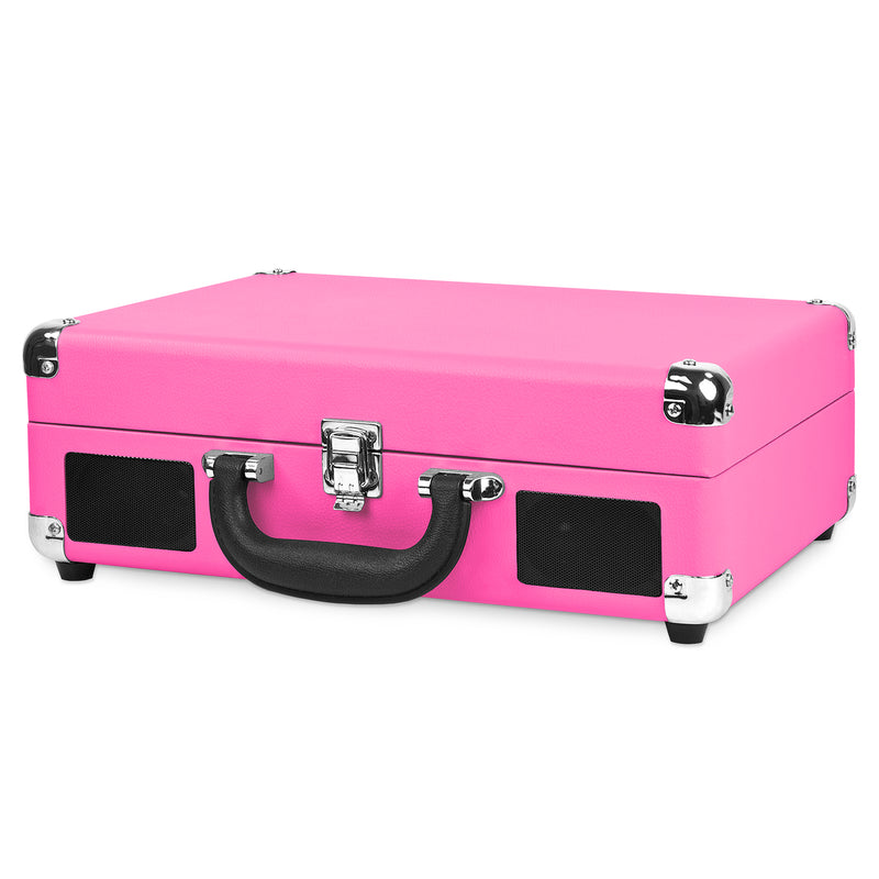 A portable suitcase-style record player that makes vinyl easy and fun. Enjoy built-in speakers for instant listening, Bluetooth streaming from your phone, and a classic design that travels wherever the music takes you.